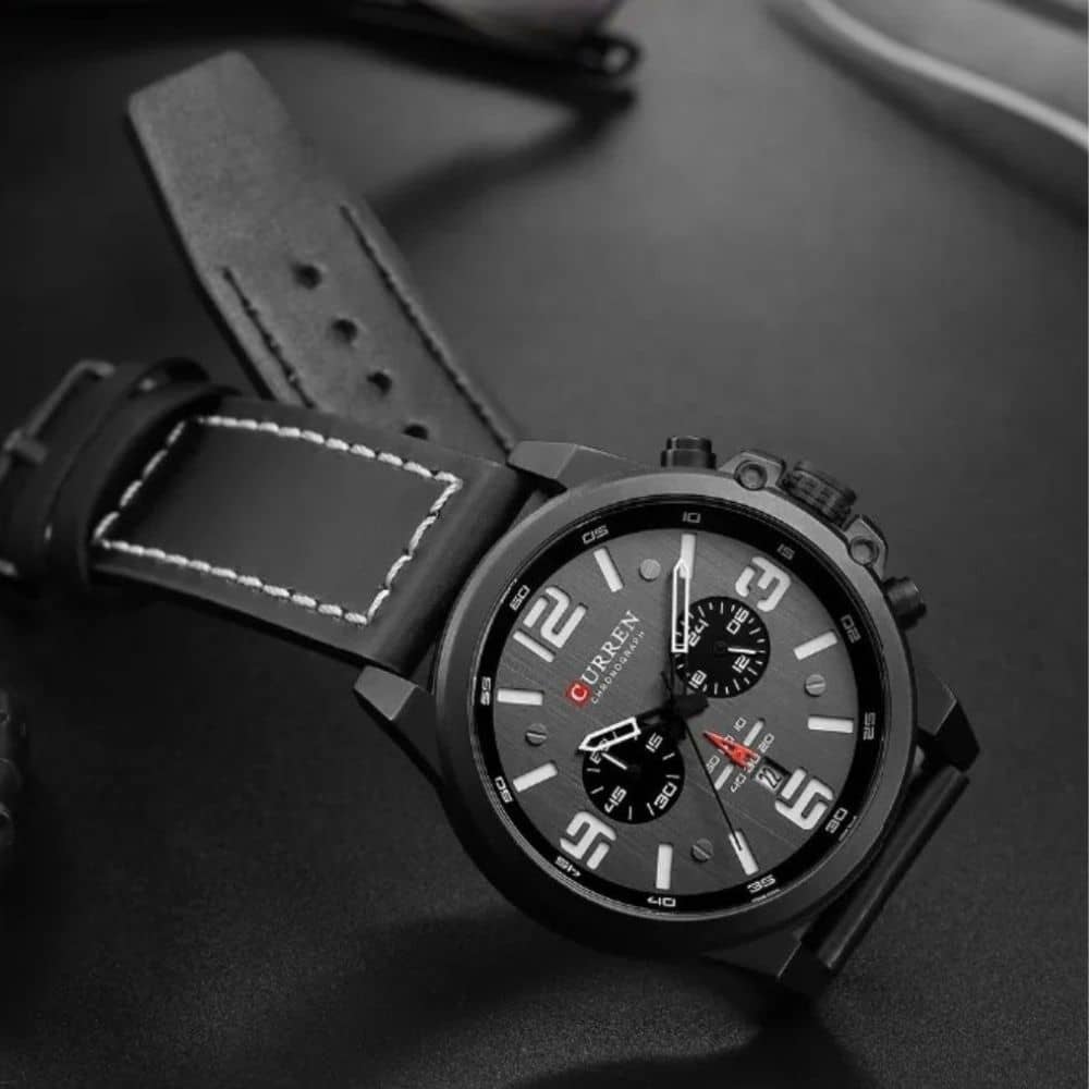 O Relógio Masculino Curren Black Hawk combina cronógrafo funcional, pulseira de couro premium e vidro mineral de alta qualidade — claro, duro e durável. Perfeito para homens que valorizam estilo e desempenho em cada detalhe.